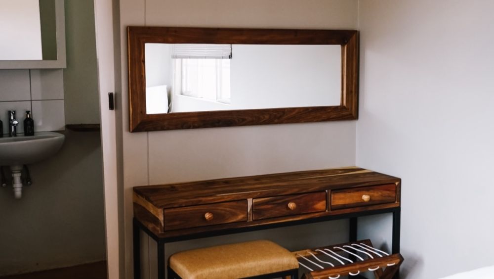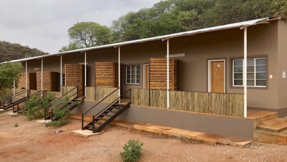 The main area of the Bush Camp is double volume and has been built to resemble a barn, allowing for a light and airy feeling and free flow throughout the building. The large, farm-style wrap-around verandas overlook a floodlit waterhole and a swimming pool which has been built to resemble a traditional Namibian farm dam.